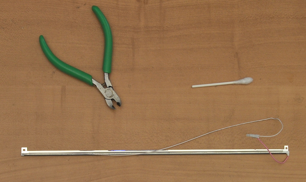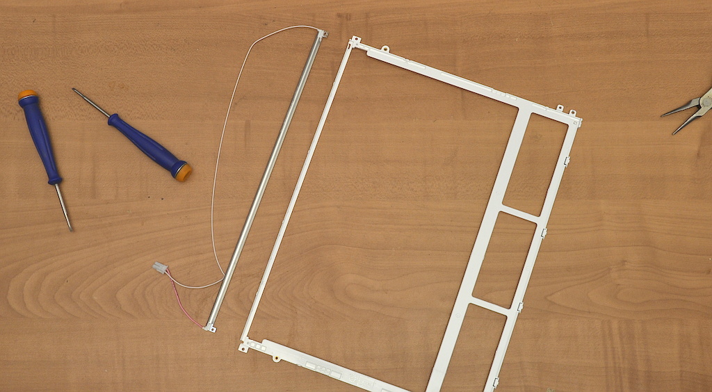 Pull the CCFL tube out of its bracket. It's held in place by three small silicone O-rings along its length that are squeezed into place in the bracket.