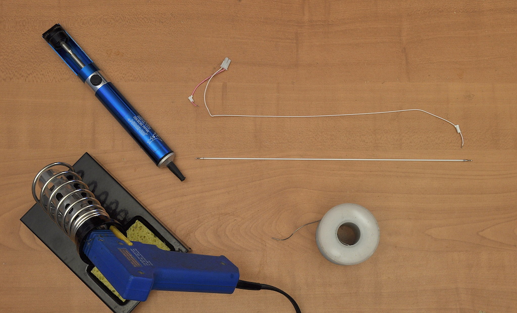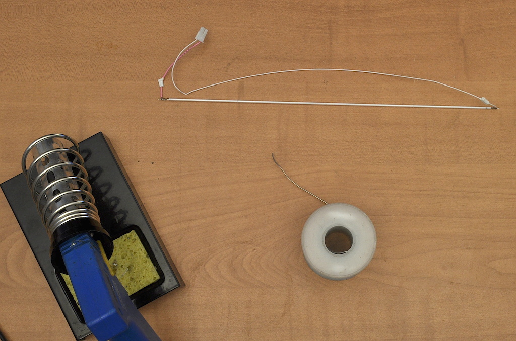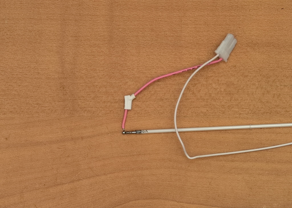 Put the silicone O-rings onto the new tube and solder it to the wires. Note that the pink and red leads are set 90 degrees to each other.