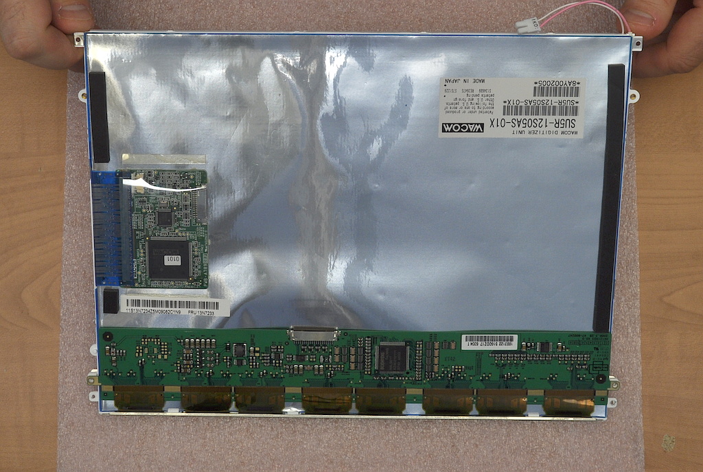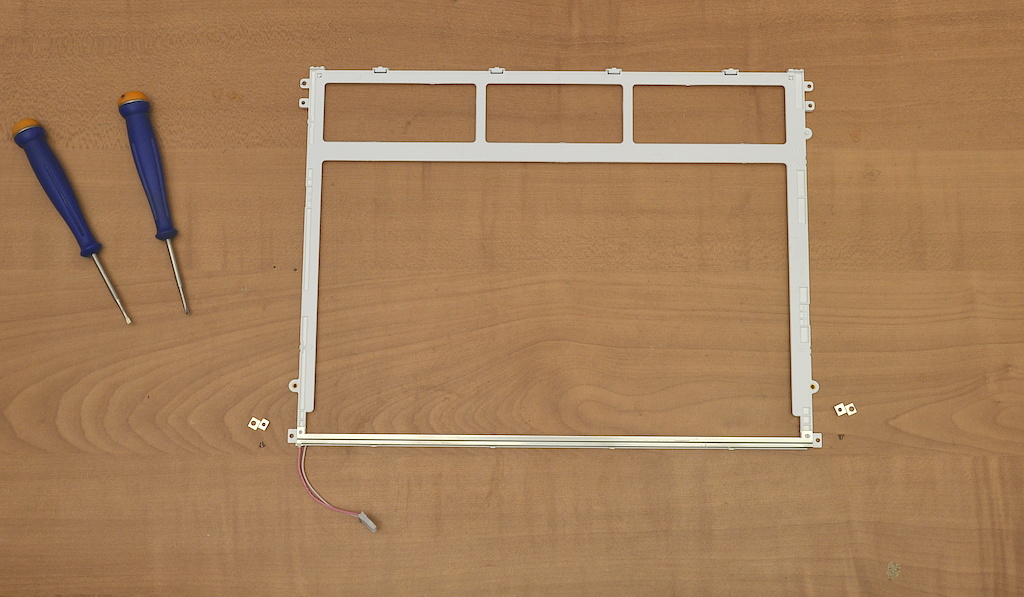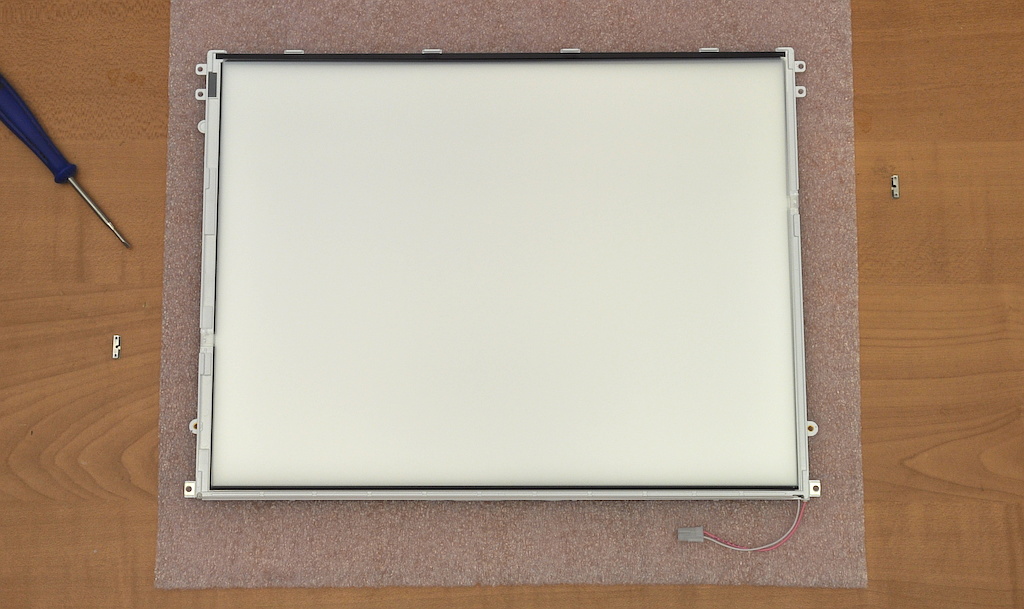 The frame includes the resistive touch layer and glass protection plate. Cover the frame (to keep dust and fingerprints out) and set aside someplace safe.