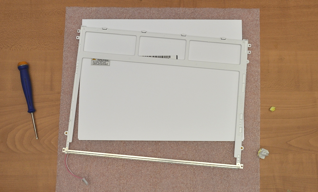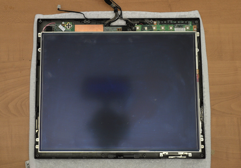 Next, flip the LCD panel panel itself out of the frame onto something soft. cover and set aside somewhere safe.